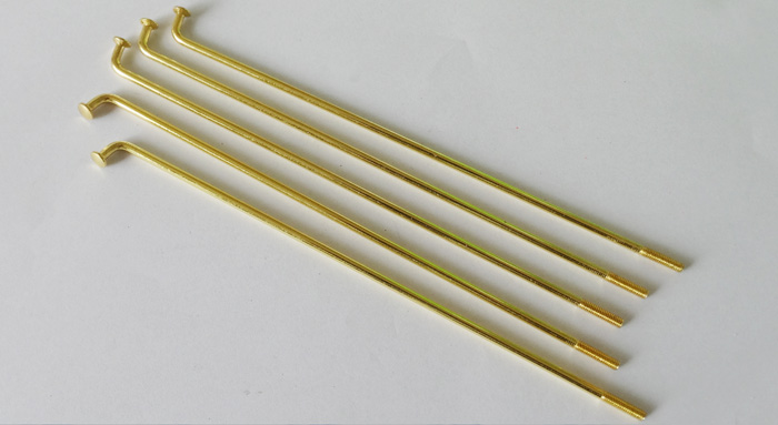 摩托車輻條的制作工藝:先選用優(yōu)質輻條鋼絲(橫截面形狀:圓形截面尺寸:3.5(mm)長度:任意(m)重量:任意(kg/km)抗拉強度:10000(MPa))盤鋼形式,放在輻條機旁。把輻條鋼絲穿過輻條機,啟動輻條機,通過對輻條鋼絲的調直,切斷,彎頭,彭頭,攻絲,幾個過程,摩托車輻條的半成品就出來了,再經過淬火,鍍鉻,檢驗,涂油,包裝,摩托車輻條的成品就出來了。 公司努力加強摩托車輻條的質量管理,以9001國際質量認證體系為標準,不斷完美企業(yè)內部的管理流程和質檢體系,使天力輻條走出國門,讓天力的摩托車輻條走遍五湖四海,大洋彼岸。