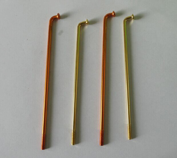 摩托車輻條的制作工藝:先選用優(yōu)質輻條鋼絲(橫截面形狀:圓形截面尺寸:3.5(mm)長度:任意(m)重量:任意(kg/km)抗拉強度:10000(MPa))盤鋼形式,放在輻條機旁。把輻條鋼絲穿過輻條機,啟動輻條機,通過對輻條鋼絲的調直,切斷,彎頭,彭頭,攻絲,幾個過程,摩托車輻條的半成品就出來了,再經過淬火,鍍鉻,檢驗,涂油,包裝,摩托車輻條的成品就出來了。 公司努力加強摩托車輻條的質量管理,以9001國際質量認證體系為標準,不斷完美企業(yè)內部的管理流程和質檢體系,使天力輻條走出國門,讓天力的摩托車輻條走遍五湖四海,大洋彼岸。
